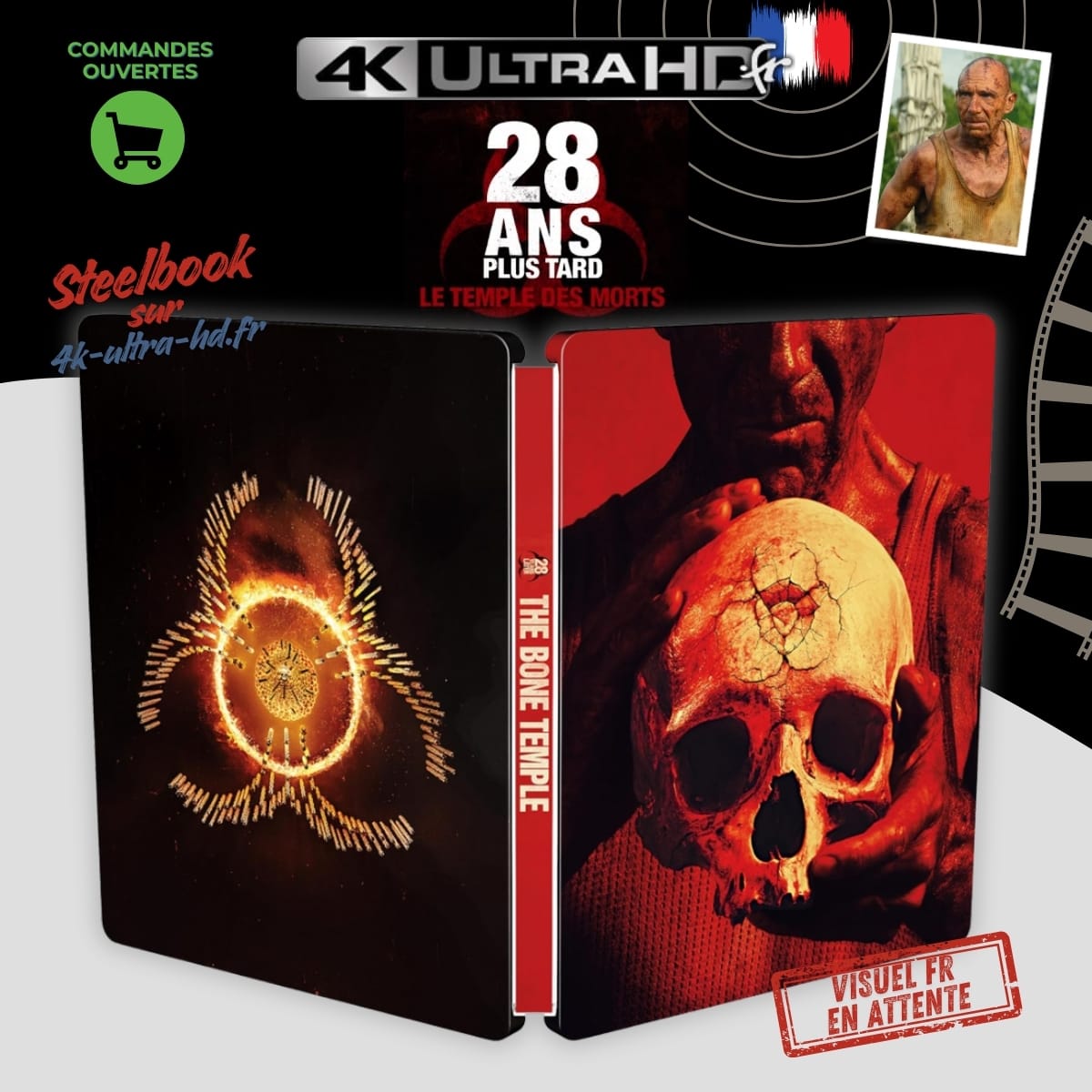 Sorti en 2026, 28 ans plus tard : Le Temple des Morts (28 Years Later: The Bone Temple) arrive en Blu-ray 4K Ultra HD dans une édition Steelbook. Cette édition comprend le film en 4K UHD et Blu-ray, pour prolonger l’univers initié par la saga culte.