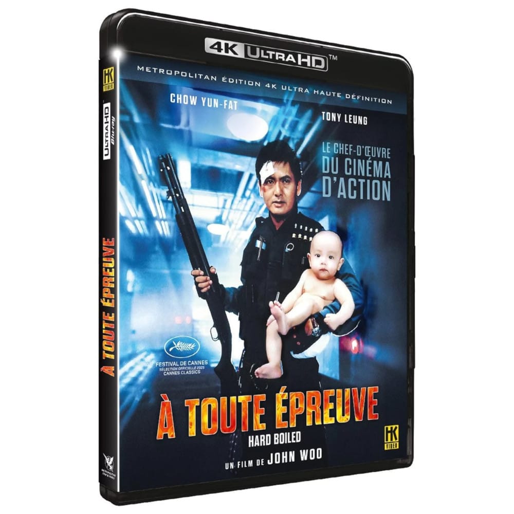 Édition Blu-ray 4K Ultra HD de À toute épreuve (Hard Boiled, 1992) proposée en édition standard. Cette édition comprend le film sur un disque 4K UHD, réalisé par John Woo avec Chow Yun-Fat, dans l’un des sommets du cinéma d’action hongkongais.