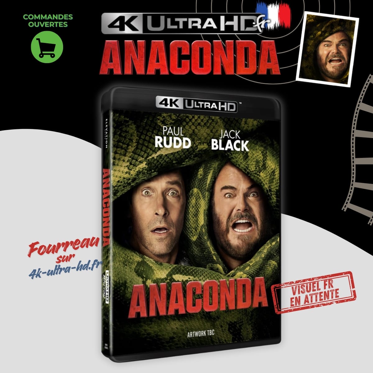 Anaconda (2025) en Blu-ray 4K Ultra HD : édition boîtier avec fourreau Sony Pictures, avec 1 disque 4K UHD-66 + 1 Blu-ray. Tom Gormican réunit Paul Rudd et Jack Black dans ce remake humoristique du film culte.