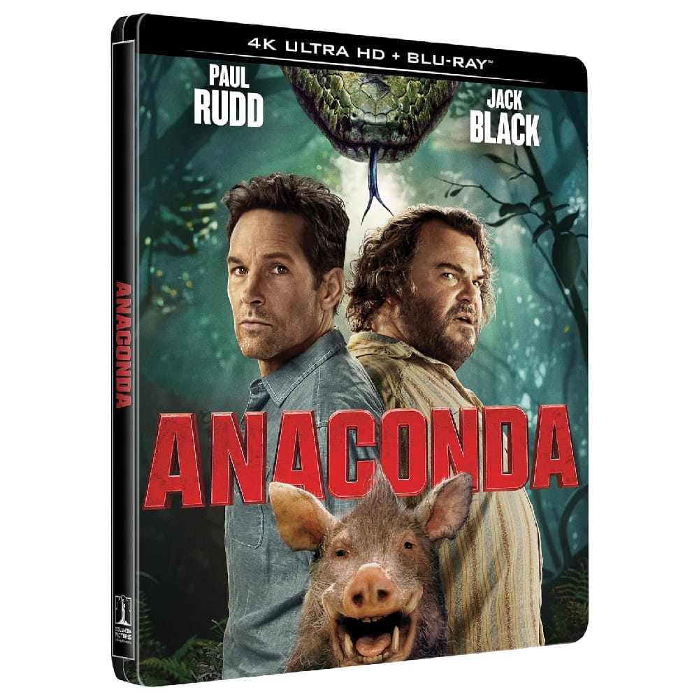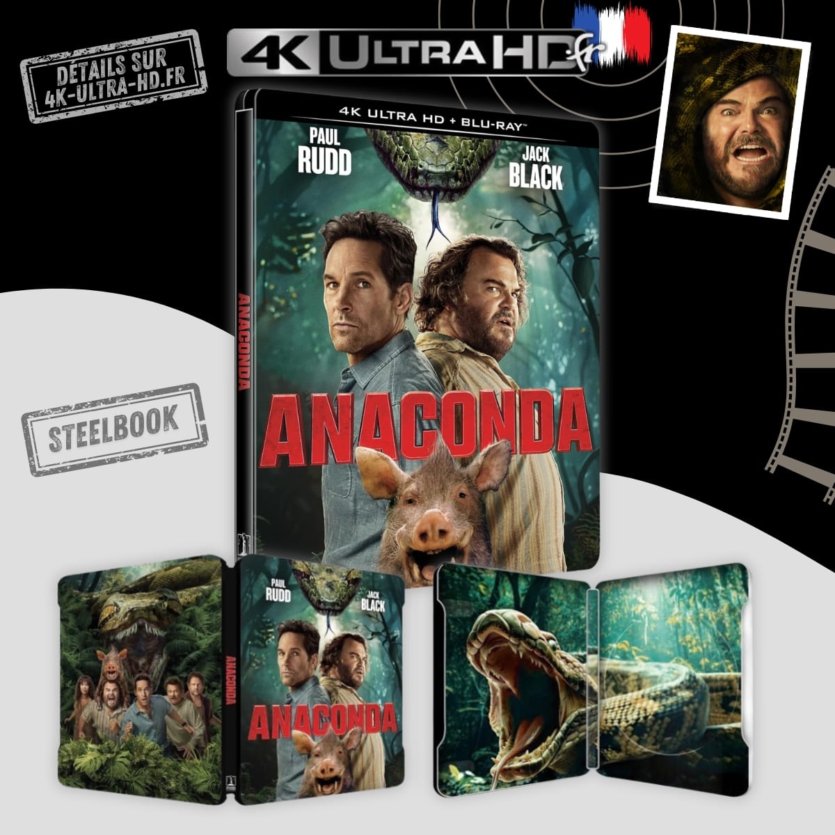 Édition Steelbook Blu-ray 4K Ultra HD d’Anaconda (2025), comprenant un disque 4K UHD et un Blu-ray, pour redécouvrir cette relecture moderne du film culte autour d’une expédition confrontée à un serpent géant, dans une édition pensée pour les collectionneurs.