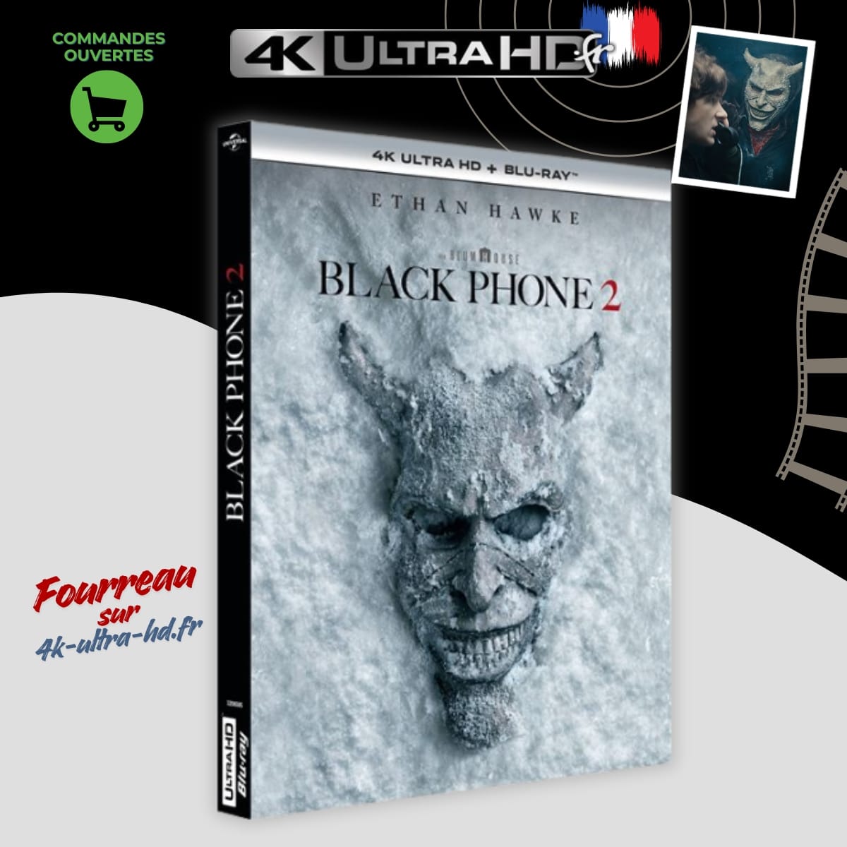 Éditeur : Universal Pictures. HDR10. Audio VO Dolby Atmos. Audio VF Dolby Digital Plus 7.1. Cette édition simple avec fourreau comprend deux disques : le film Black Phone 2 en 4K Ultra HD et en Blu-ray standard. Une présentation sobre, sans goodies ni exclusivités, pensée pour les amateurs de cinéma d’horreur en haute définition.