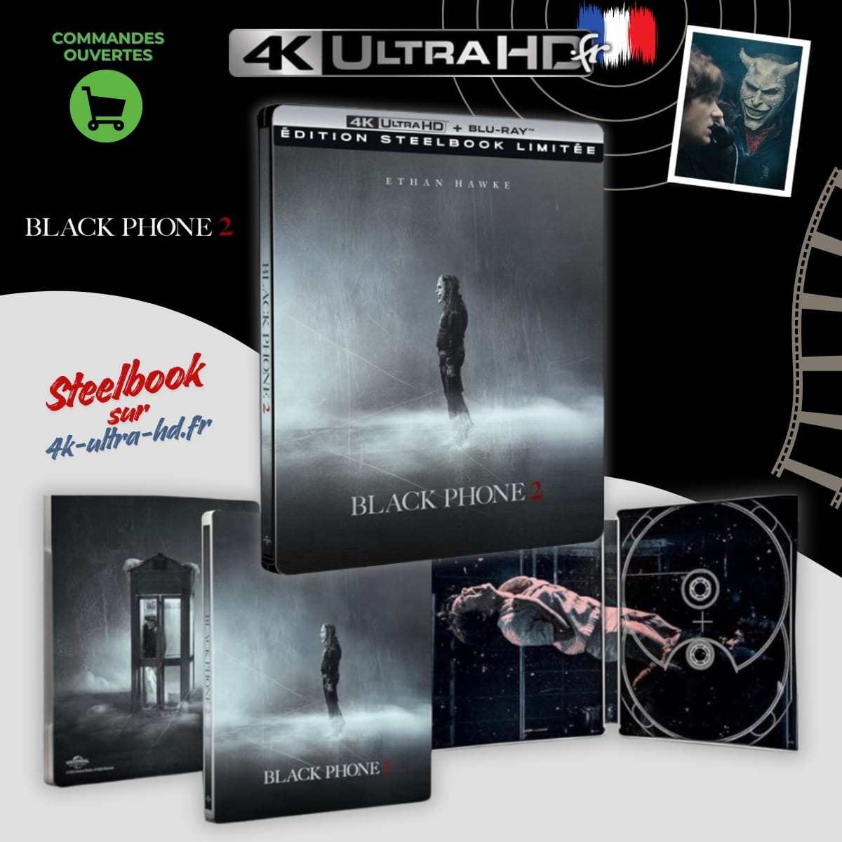 Plongez dans la nouvelle terreur signée Scott Derrickson avec cette édition Black Phone 2 4k Steelbook. Consultez les revendeurs partenaires via ce lien pour la précommander.