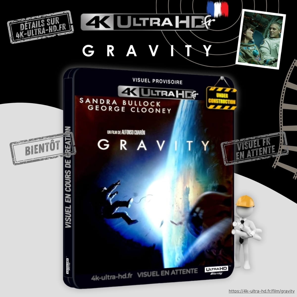 Gravity est un film de science-fiction réalisé par Alfonso Cuarón. Écrit, produit, réalisé et monté par le cinéaste, le film prend la forme d’un huis clos spatial centré sur deux astronautes, seuls survivants d’une mission de réparation du télescope Hubble après une collision provoquée par des débris en orbite.Le récit repose sur l’affrontement entre l’immensité du vide, l’urgence de la survie et le parcours intérieur de ses personnages. Les rôles principaux sont tenus par Sandra Bullock et George Clooney.