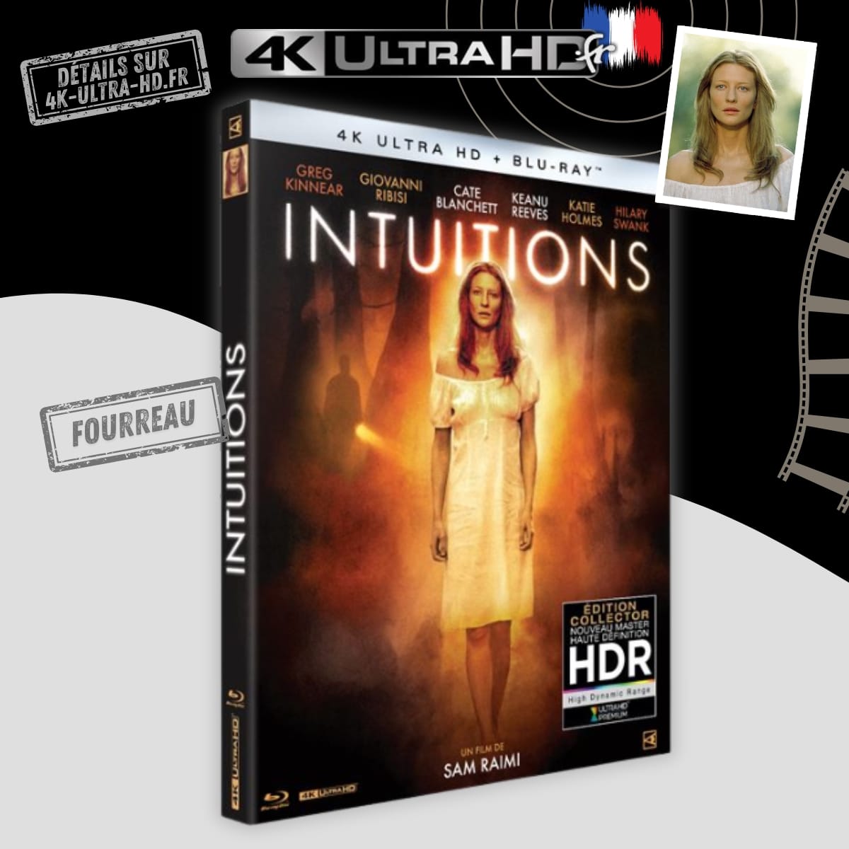 Intuitions (The Gift) est un thriller fantastique réalisé par Sam Raimi, également connu pour Evil Dead et la trilogie Spider-Man. Sorti en 2000, le film s’inscrit dans une atmosphère sombre et mystérieuse, mêlant enquête criminelle et perceptions extrasensorielles dans une petite communauté du Sud des États-Unis.Cate Blanchett, révélée par Elizabeth, y incarne une voyante confrontée à une disparition inquiétante, face à Giovanni Ribisi, vu dans Il faut sauver le soldat Ryan, et Keanu Reeves, connu pour Matrix.