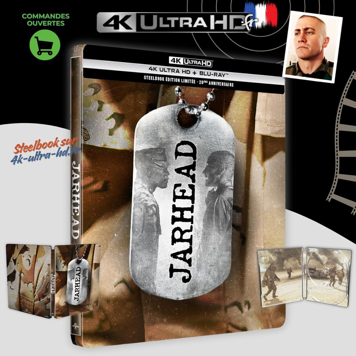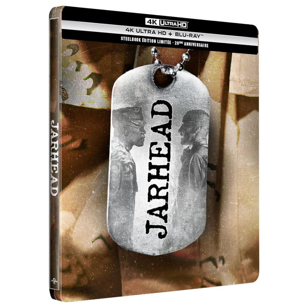 Éditeur : Universal Pictures. Cette édition Steelbook propose Jarhead : La Fin de l’innocence dans une version restaurée en 4K Ultra HD, accompagnée d’un disque Blu-ray HD. Le tout est présenté dans un boîtier métal illustré, à destination des collectionneurs et amateurs de films de guerre contemporains. Les suppléments vidéo n’ont pas encore été détaillés à ce jour.
