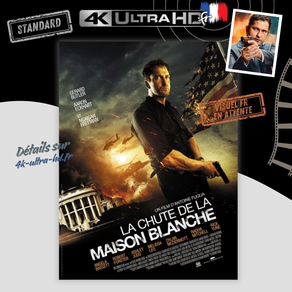 La Chute de la Maison Blanche (Olympus Has Fallen), film d’action et thriller réalisé par Antoine Fuqua, met en scène Gerard Butler et Aaron Eckhart dans le récit d’une attaque terroriste visant la Maison-Blanche.