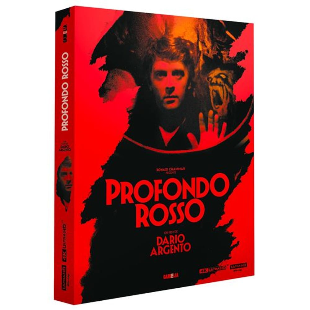 Édition Collector Blu-ray 4K UHD de Les Frissons de l'angoisse (Profondo Rosso) comprenant le film en 4K Ultra HD (Dolby Vision, HDR10) et en Blu-ray, avec plusieurs bonus vidéo dont entretiens et documentaire sur le giallo. | Les Films du Camélia
