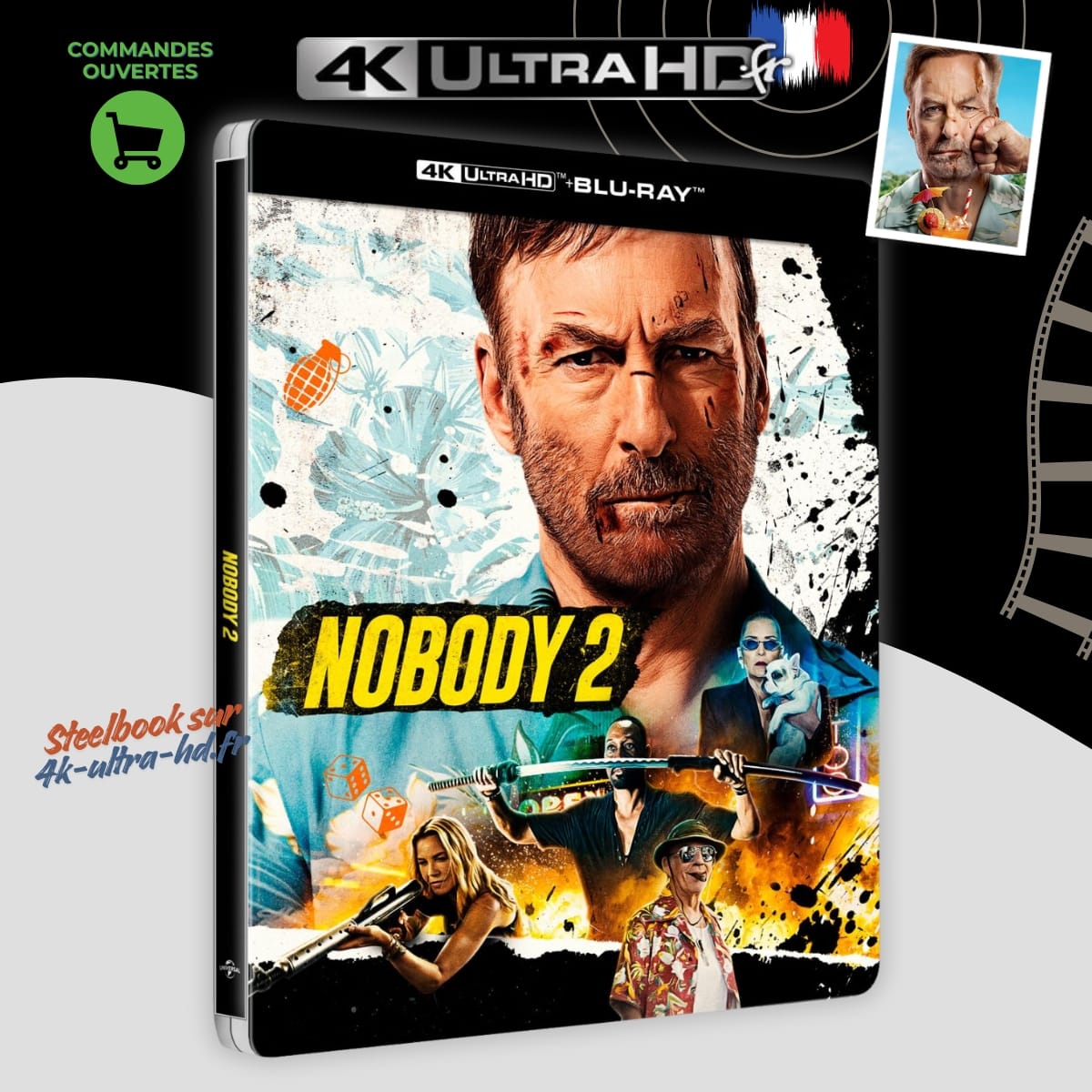 Éditeur : Universal. Cette édition Steelbook met en avant le film Nobody 2 (2025) réalisé par Timo Tjahjanto, et propose un combo 4K Ultra HD + Blu-ray. D’éventuelles exclusivités et bonus restent à préciser.