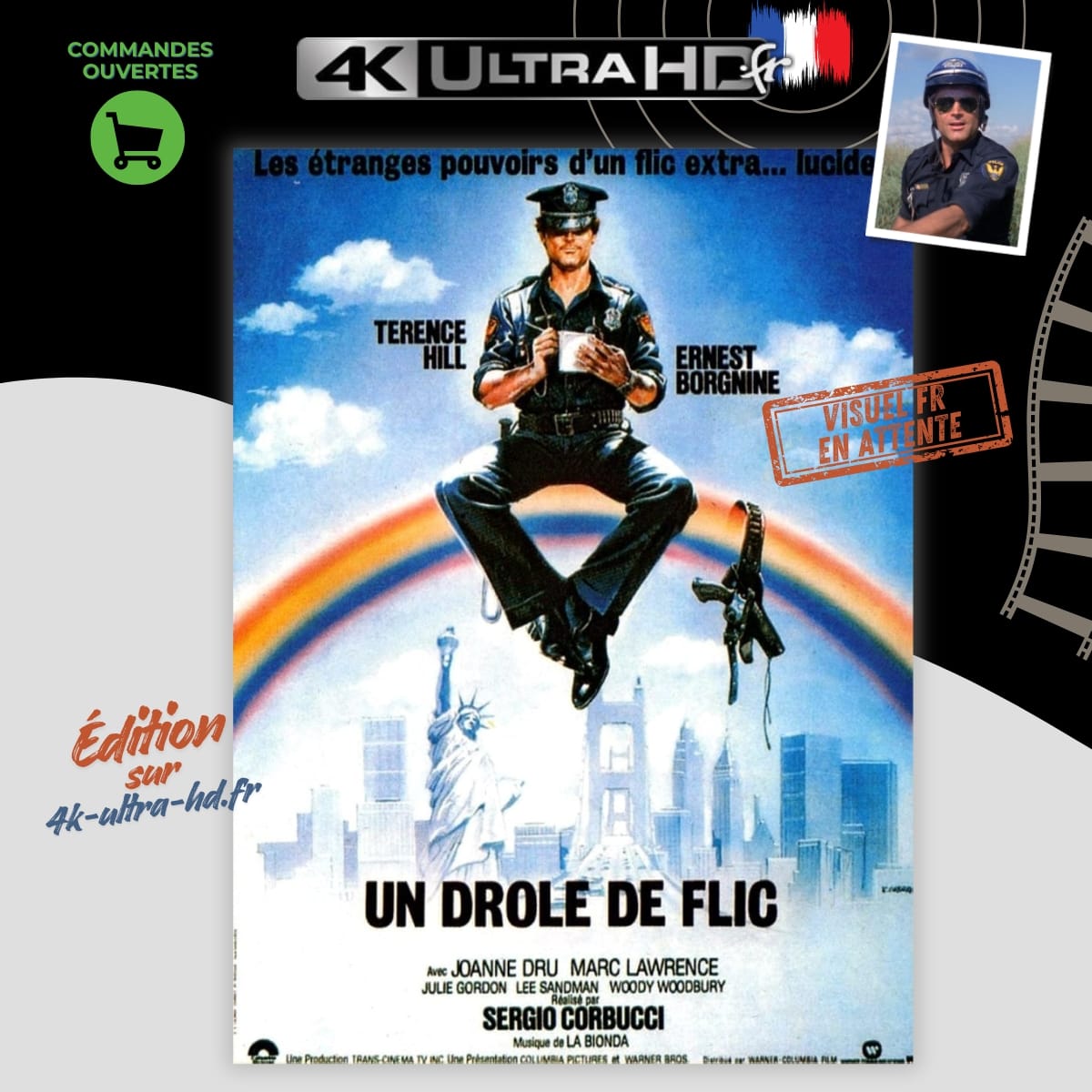 Éditeur : BQHL Éditions. HDR10. Audio VO : DTS-HD MA 2.0. Audio VF : DTS-HD MA 2.0. Cette édition 4K Ultra HD de Un drôle de flic propose le film dans un master restauré en Ultra HD, avec un disque 4K UHD pour redécouvrir cette comédie policière italienne mêlant action, humour et fantastique.