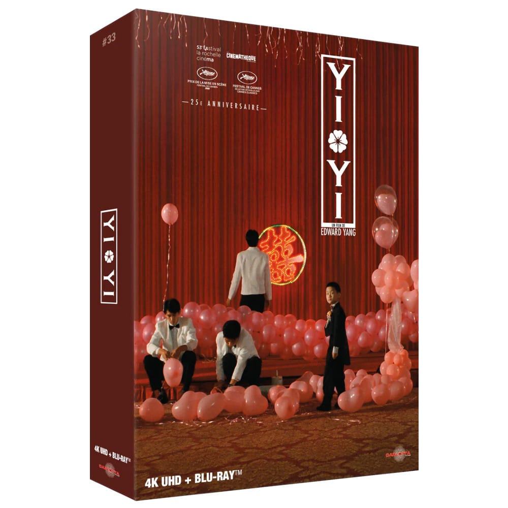 Éditeur : Carlotta Films. Audio : VO : DTS-HD MA 2.0, VF : DTS-HD MA 2.0. Cette édition prestige limitée à 2000 exemplaires propose une restauration 4K du film « Yi Yi » dans un coffret boîte cloche élégant. Elle contient un digipack exclusif comprenant deux disques (4K UHD et Blu-ray) ainsi que des goodies inédits. Il s’agit du 33e volume de la collection Carlotta Films.